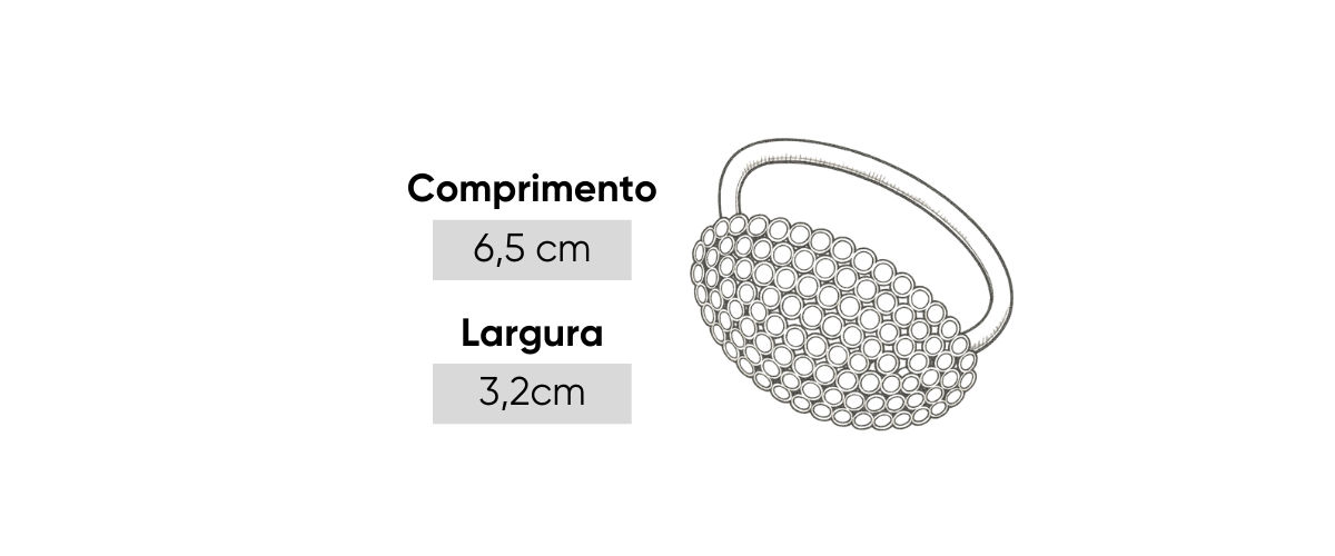 Sua estrutura dourada é toda recoberta por fileiras de cristais transparentes, cuidadosamente aplicados para criar um efeito luminoso e delicado. O acabamento arredondado confere um visual sofisticado e moderno, enquanto o elástico preto garante conforto e firmeza ao prender o cabelo, sem marcar os fios.