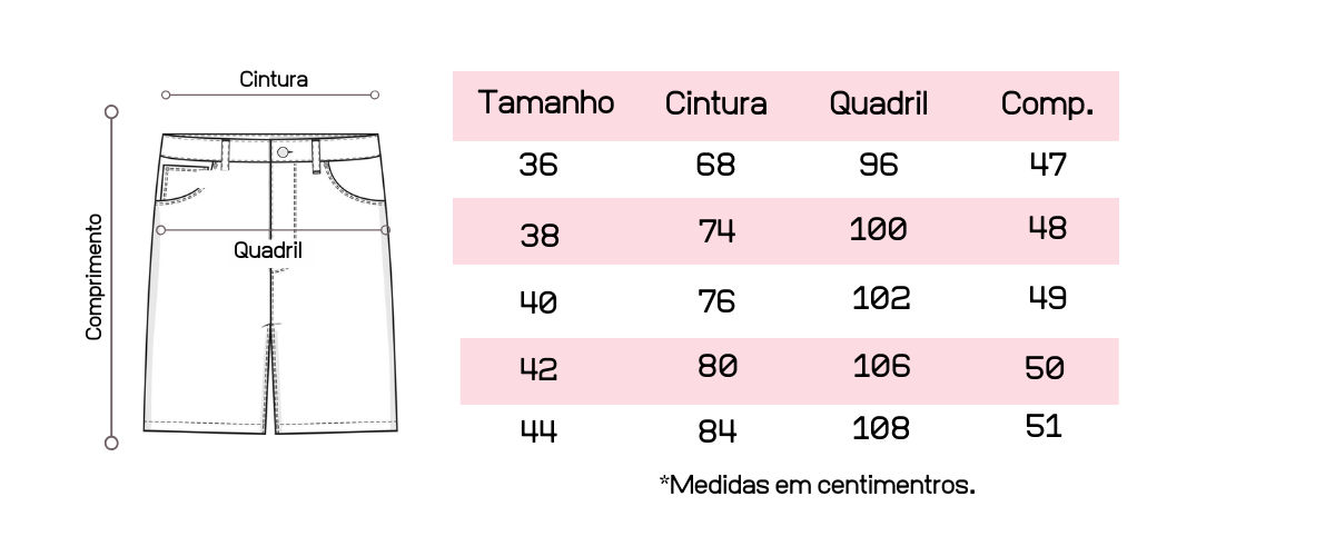 Atente-se as medidas na hora da compra para que receba a sua peça exatamente do tamanho que deseja