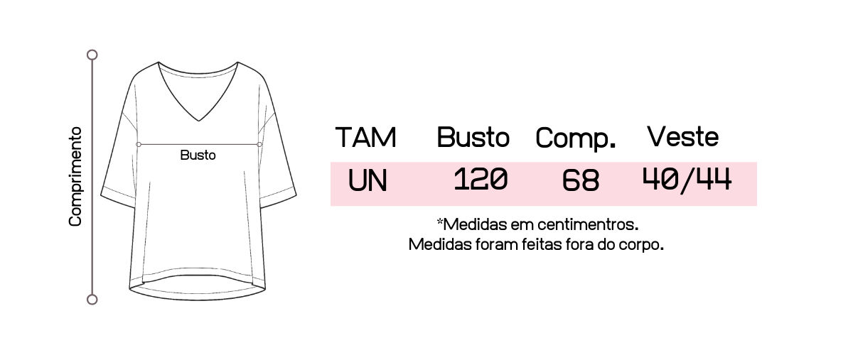 Atente-se as medidas na hora da compra para que receba a sua peça exatamente do tamanho que deseja