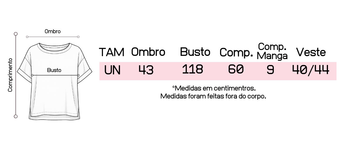 📏 Tamanho único: veste do 40 ao 44 com ótimo caimento.