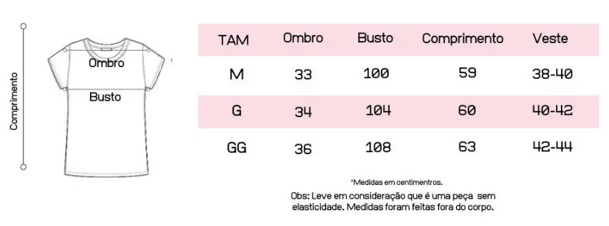 Atente-se as medidas na hora da compra para que receba a sua peça exatamente do tamanho que deseja