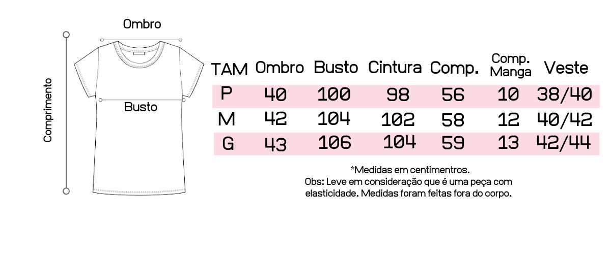 Atente-se as medidas na hora da compra para que receba a sua peça exatamente do tamanho que deseja