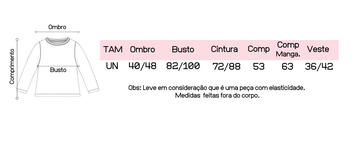 Atente-se as medidas na hora da compra para que receba a sua peça exatamente do tamanho que deseja