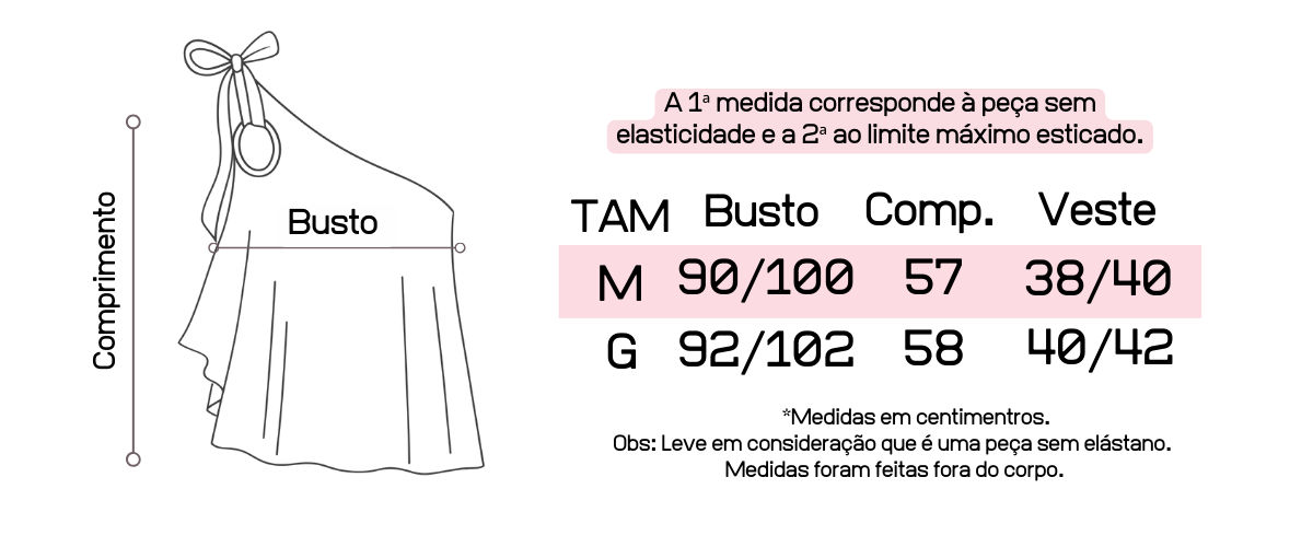 Atente-se as medidas na hora da compra para que receba a sua peça exatamente do tamanho que deseja