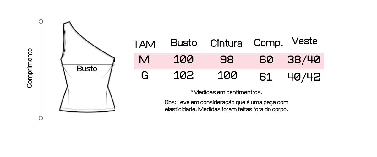 Atente-se as medidas na hora da compra para que receba a sua peça exatamente do tamanho que deseja
