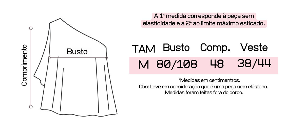 Atente-se as medidas na hora da compra para que receba a sua peça exatamente do tamanho que deseja