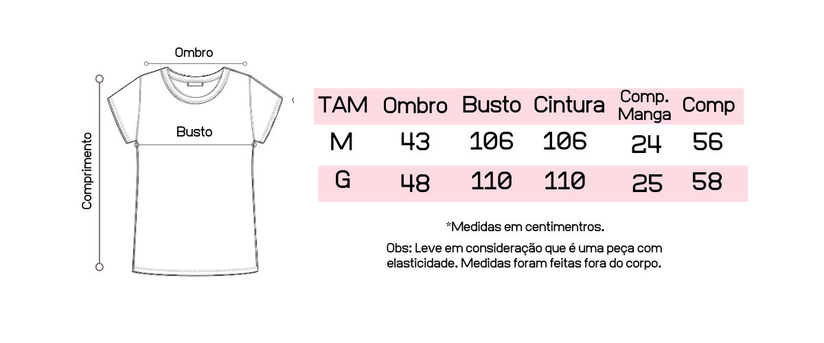 Atente-se as medidas na hora da compra para que receba a sua peça exatamente do tamanho que deseja