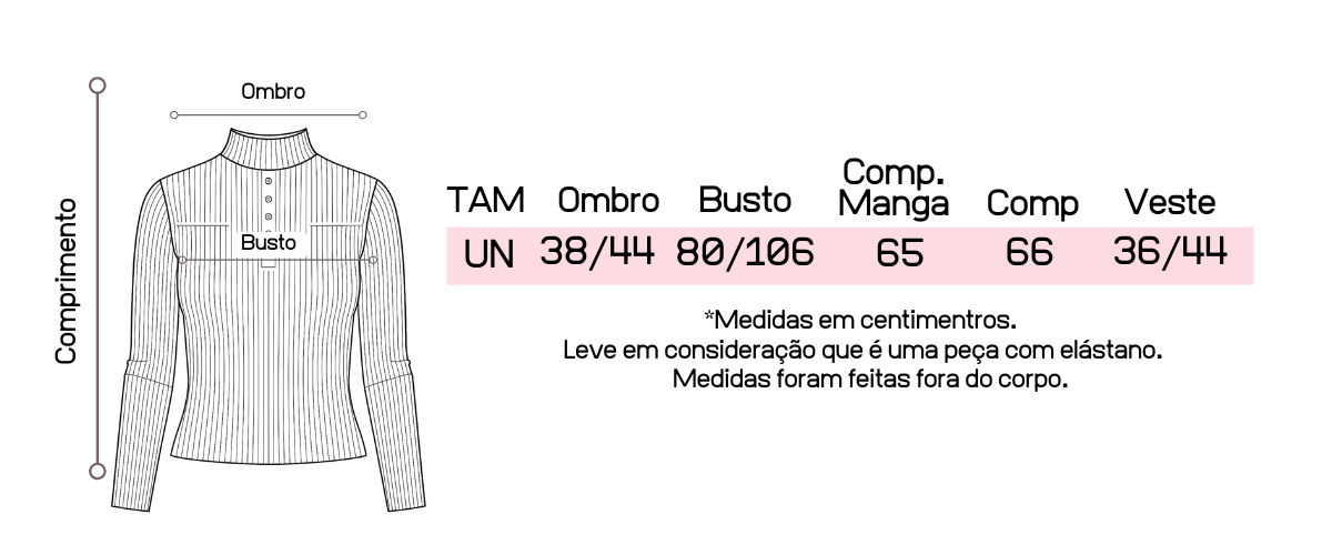 Atente-se as medidas na hora da compra para que receba a sua peça exatamente do tamanho que deseja
