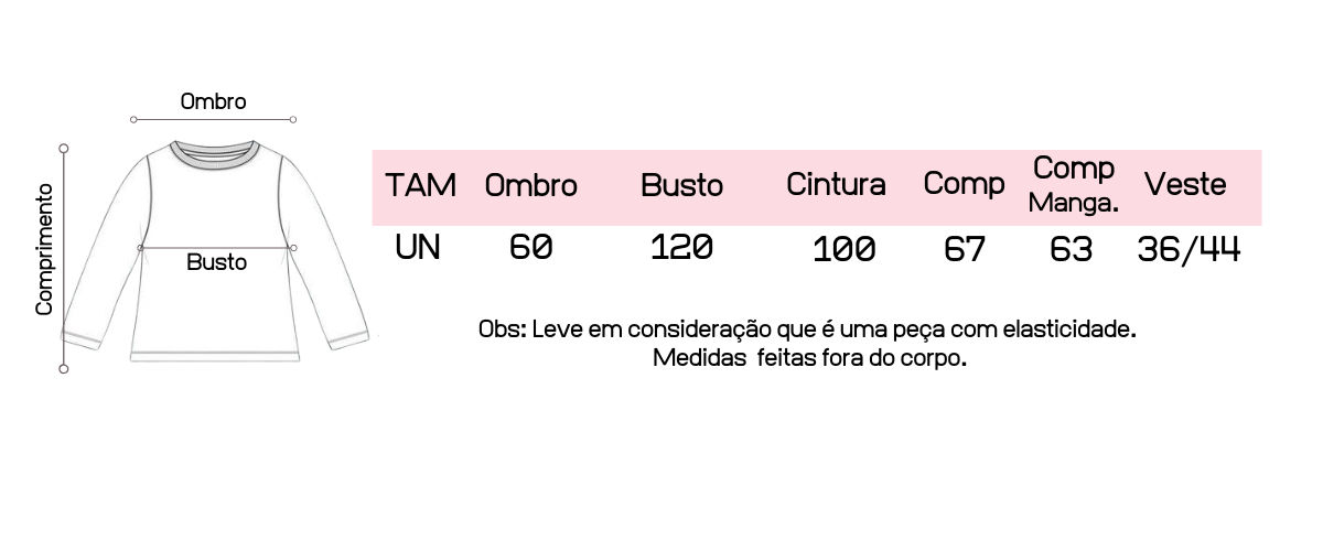 Atente-se as medidas na hora da compra para que receba a sua peça exatamente do tamanho que deseja