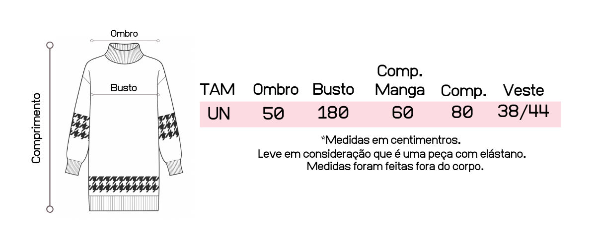 Atente-se as medidas na hora da compra para que receba a sua peça exatamente do tamanho que deseja