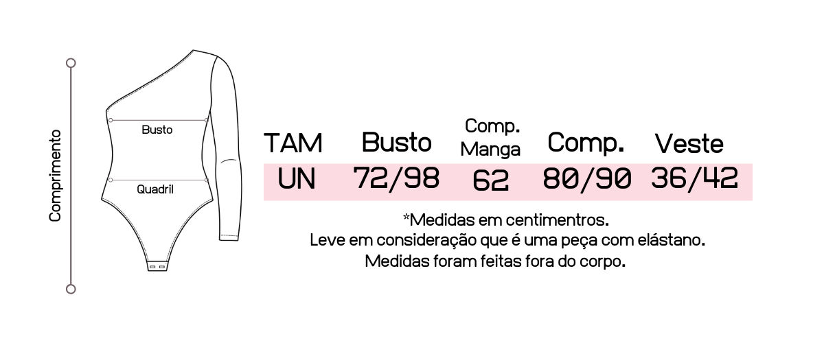 O Body Emília é a escolha perfeita para quem ama sofisticação com um toque ousado! Com design assimétrico de um ombro só, ele valoriza o colo de forma elegante e atual. Sua manga longa traz equilíbrio ao visual e o torna ideal tanto para dias mais frescos quanto para produções noturnas.