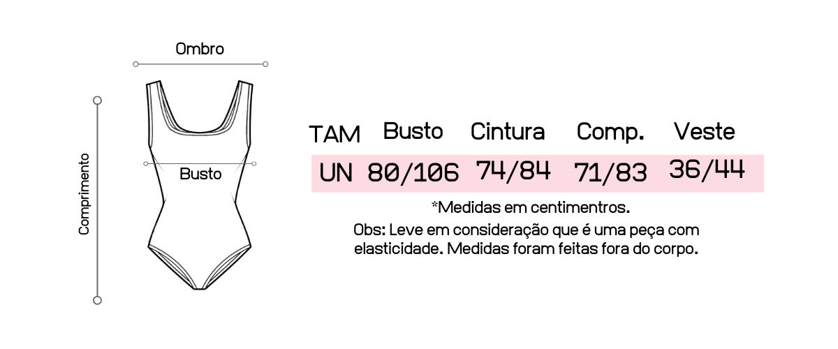 - Body confeccionado no tecido anarruga com elástano;