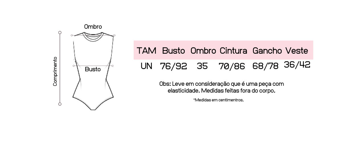 Atente-se as medidas na hora da compra para que receba a sua peça exatamente do tamanho que deseja