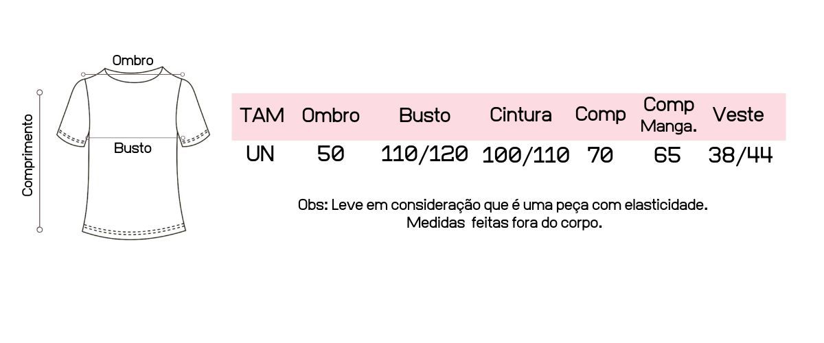 Atente-se as medidas na hora da compra para que receba a sua peça exatamente do tamanho que deseja