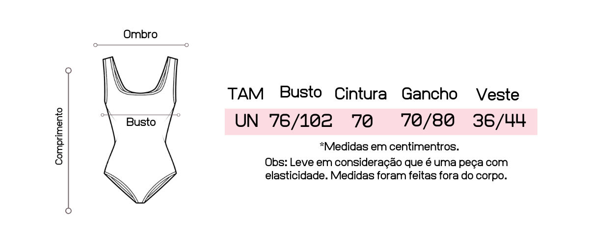 Sendo uma marca nacional, temos como objetivo realçar a beleza dos corpos de mulheres reais brasileiras e entregar peças fiéis aos anúncios. Pelo que todas as nossas coleções são desenvolvidas tendo em conta as nossas particularidades nacionais. Gisele usa tamanhos 40/42 e G de quadril e 44 de busto. Contamos com um time para auxiliar na sua escolha de tamanhos.
