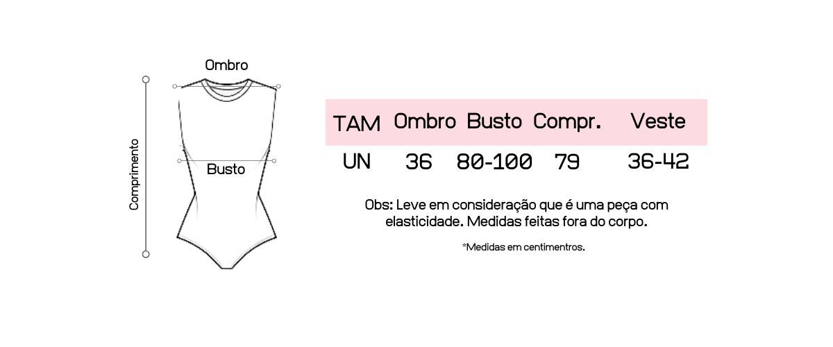 | Modelo | Modelagem que se ajusta ao corpo; Modelo regata; Modelo transpassado. |