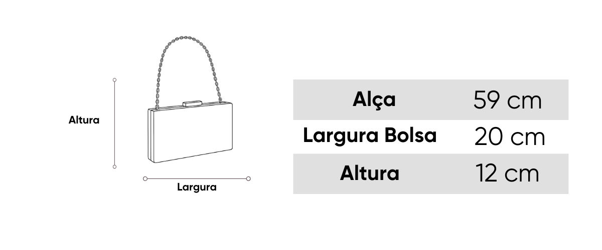 ✔ Pode ser usada como clutch de mão ou bolsa tiracolo.