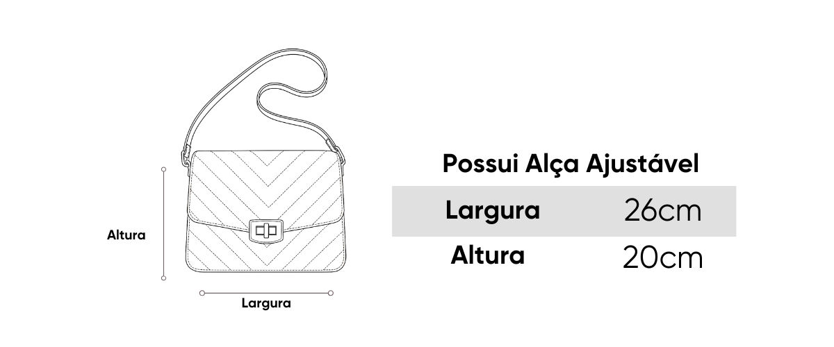 Uma peça curinga com toque de elegância e acabamento impecável! A Bolsa Couro Eco Paola é feita em material sintético de alta qualidade, com costura matelassê em padrão diagonal que valoriza o formato em V na parte frontal. Seu fecho dourado em metal com giro adiciona charme e segurança ao modelo.