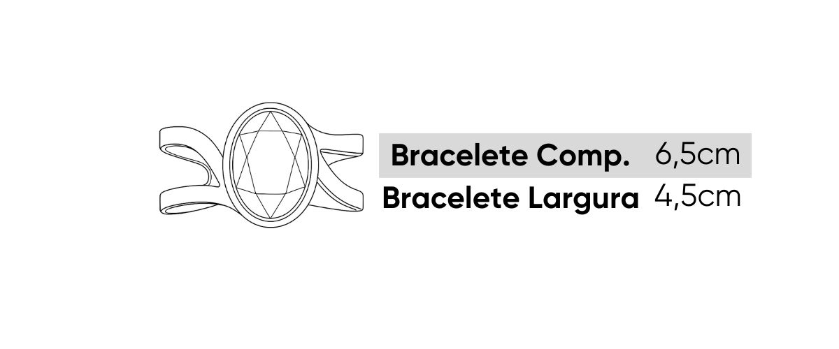 O destaque da peça é a pedra central oval em tom acinzentado claro, com lapidação facetada, criando reflexos delicados e um efeito visual super refinado. O dourado em contraste com a pedra faz o bracelete se destacar tanto em looks mais básicos quanto em produções festivas.