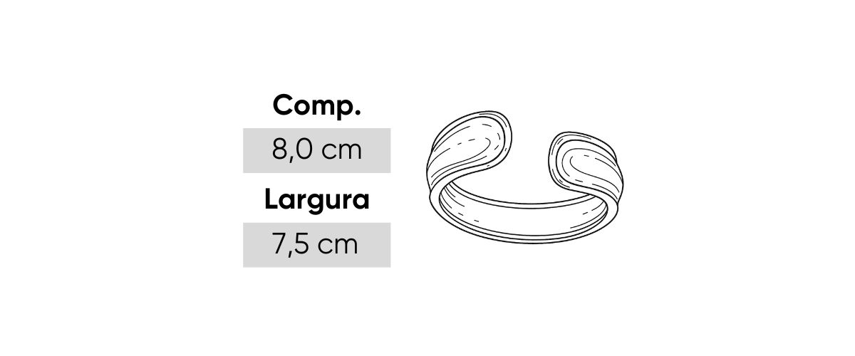O Bracelete Jana é uma joia de impacto que une arte e elegância em um só design. Seu formato aberto e orgânico, com curvas fluidas e volumosas, cria um efeito escultural que valoriza o pulso com modernidade e sofisticação.