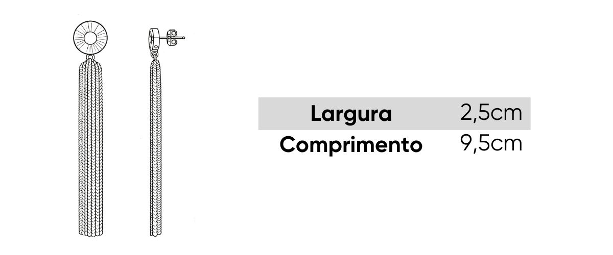 Com design alongado, ele combina uma base redonda com acabamento polido e um pendente de franjas metálicas, que trazem movimento, brilho sofisticado e efeito alongador ao visual.