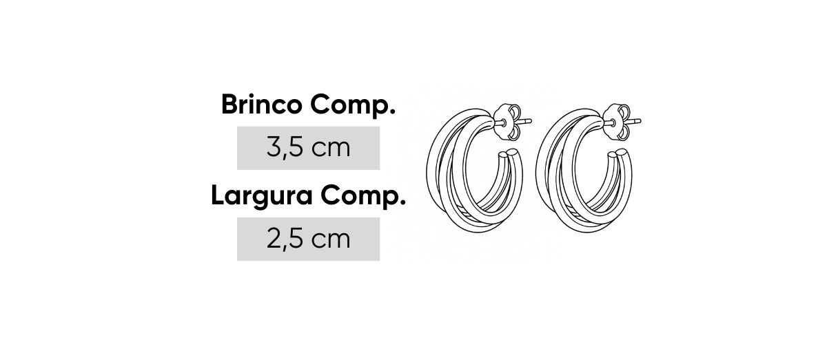 Com design de argola tripla entrelaçada, o acessório traz um efeito de volume moderno e delicado ao mesmo tempo.