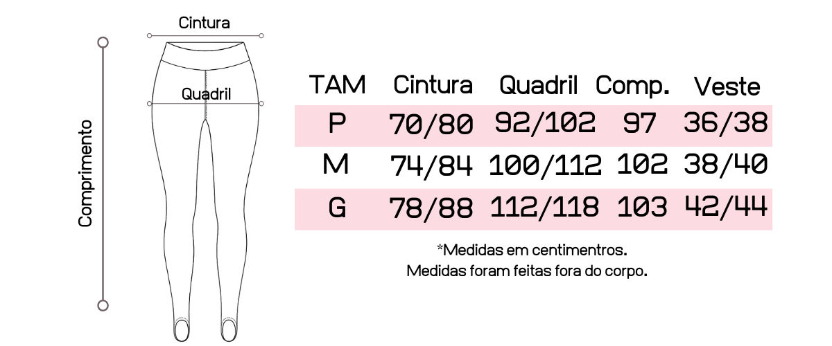 Atente-se as medidas na hora da compra para que receba a sua peça exatamente do tamanho que deseja