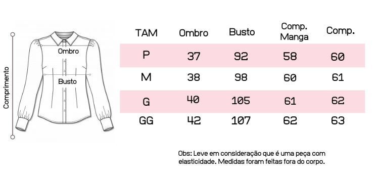 Atente-se as medidas na hora da compra para que receba a sua peça exatamente do tamanho que deseja