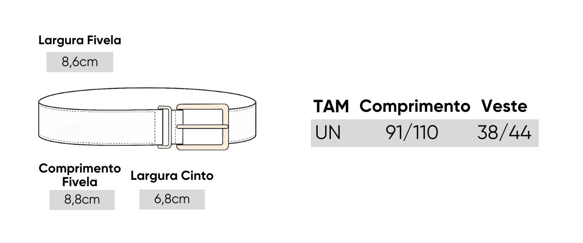 A peça conta com fivela 100% metal com acabamento dourado, que traz um toque moderno e elegante, tornando o cinto ideal para compor desde looks casuais até combinações mais refinadas.