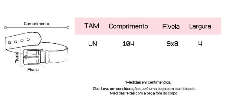 Nosso cinto vem em tamanho único porém pode ser ajustado ao corpo.