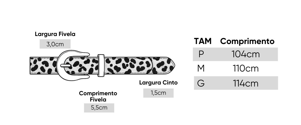 O Cinto Laura é uma peça slim feita em 100% couro legítimo, com textura peluciada e acabamento de alto padrão. Suas estampas em animal print trazem charme e ousadia na medida certa, enquanto a fivela metálica dourada garante um toque de sofisticação atemporal.
