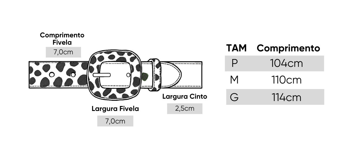 O Cinto Renata traz a elegância e ousadia do animal print com acabamento em pelo sintético sobre base de couro ecológico de alta qualidade, garantindo não só estilo, mas também excelente durabilidade. Seu design estruturado conta com fivela forrada no mesmo material da faixa, formando um visual sofisticado e harmonioso.