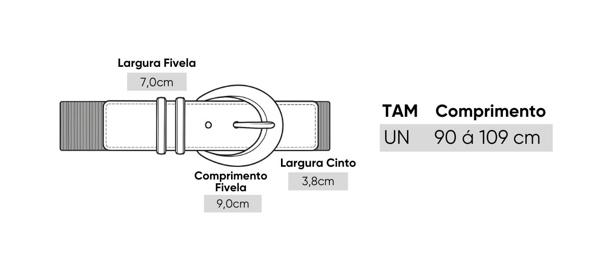 | Composição | Fivela 100% Metal - Elástico em Poliuretano |