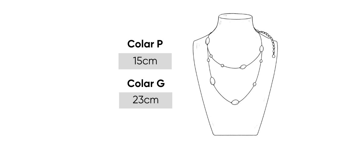 O Colar Rússia é uma peça alongada, elegante e atemporal — ideal para composições sofisticadas e modernas.