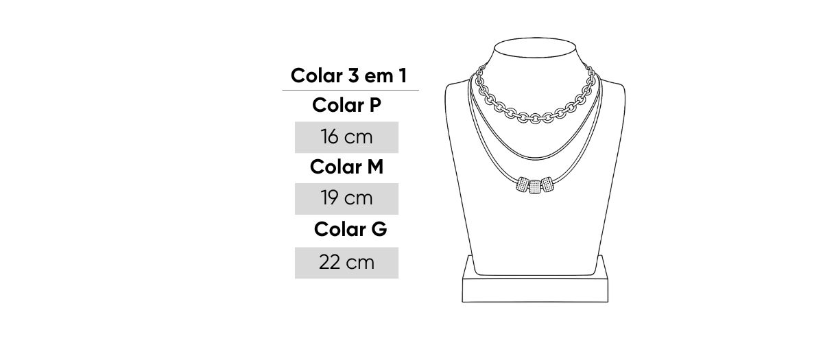 Colar triplo fixo com três camadas;