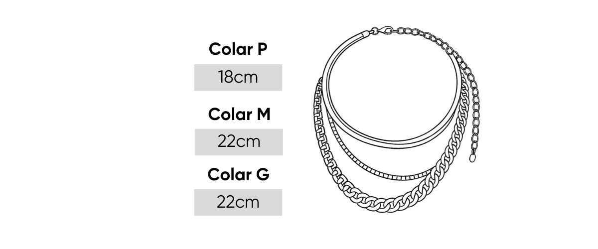 Terceira corrente de elos mais largos, no estilo gourmette, que garante impacto e destaque.