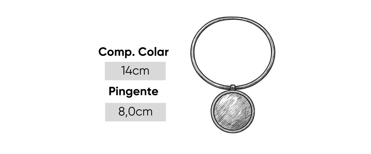 Possui base rígida dourada, estilo gargantilha, que valoriza o colo e traz um ar moderno e imponente.