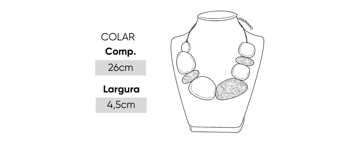 O Colar Ivana é uma peça marcante, ideal para quem deseja adicionar personalidade e sofisticação ao look. Ele combina pedras em resina polida em tom terroso com elementos ovais e orgânicos em metal dourado trabalhado, criando um contraste elegante entre o brilho suave da resina e os relevos sofisticados do metal.