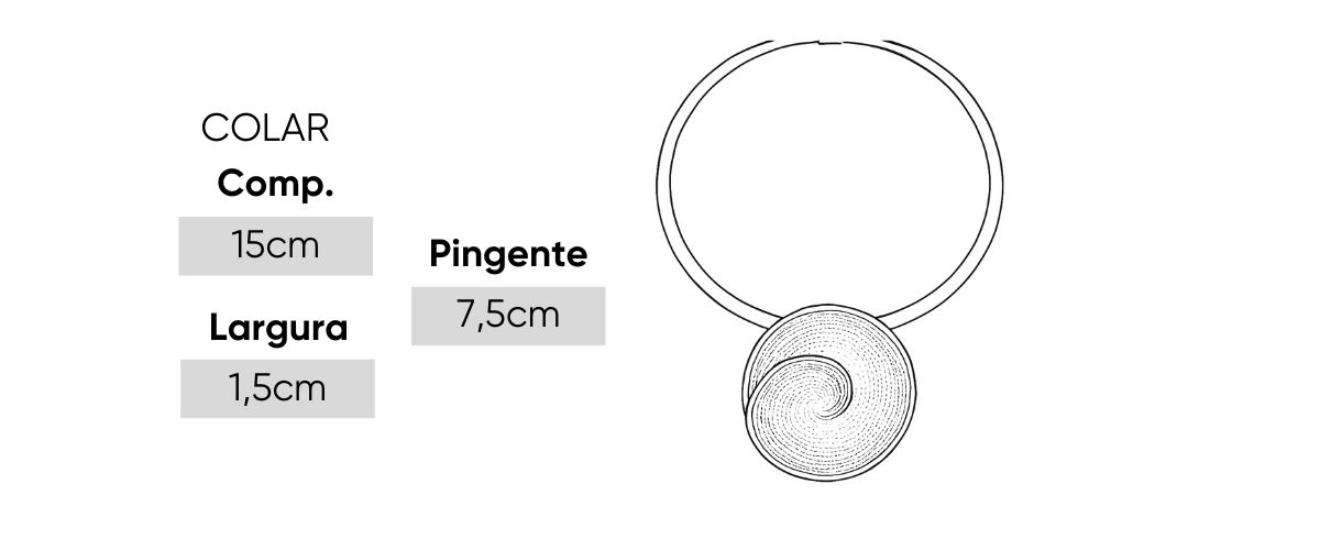 O destaque fica por conta do pingente em formato circular duplo, com acabamento texturizado em espiral que reflete a luz de maneira única, criando um efeito marcante e sofisticado.