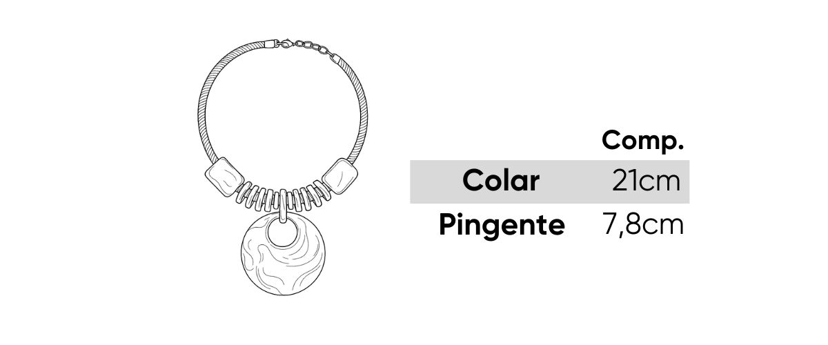 O destaque é o pingente orgânico em formato de gota, com efeito ambarado marmorizado, que traz movimento, brilho e um toque artístico à peça.