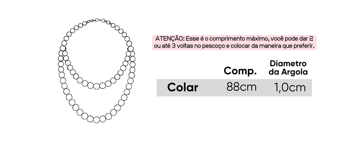 Três voltas de pérolas com tamanhos homogêneos você pode colocar no seu pescoço conforme sua prefêrencia.