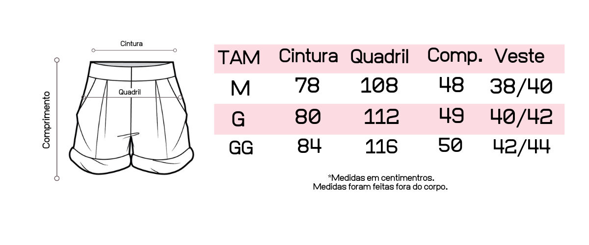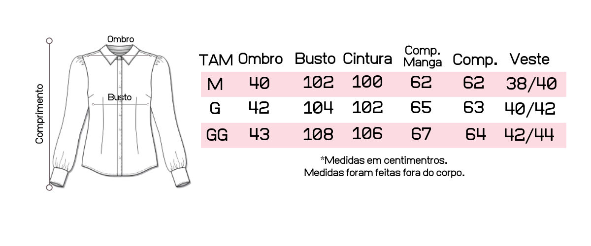 Atente-se as medidas na hora da compra para que receba a sua peça exatamente do tamanho que deseja