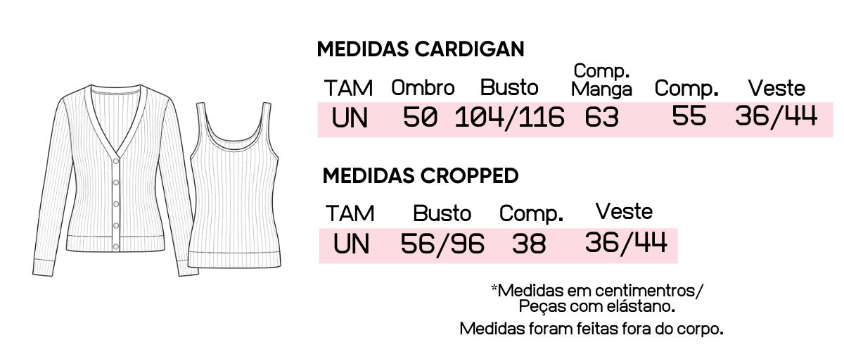 AdicionarNosso conjunto twin-set Mirela é composto por duas peças curingas: cardigan de manga longa com botões frontais e regata básica em tricot, ambas desenvolvidas em linha super confortável.