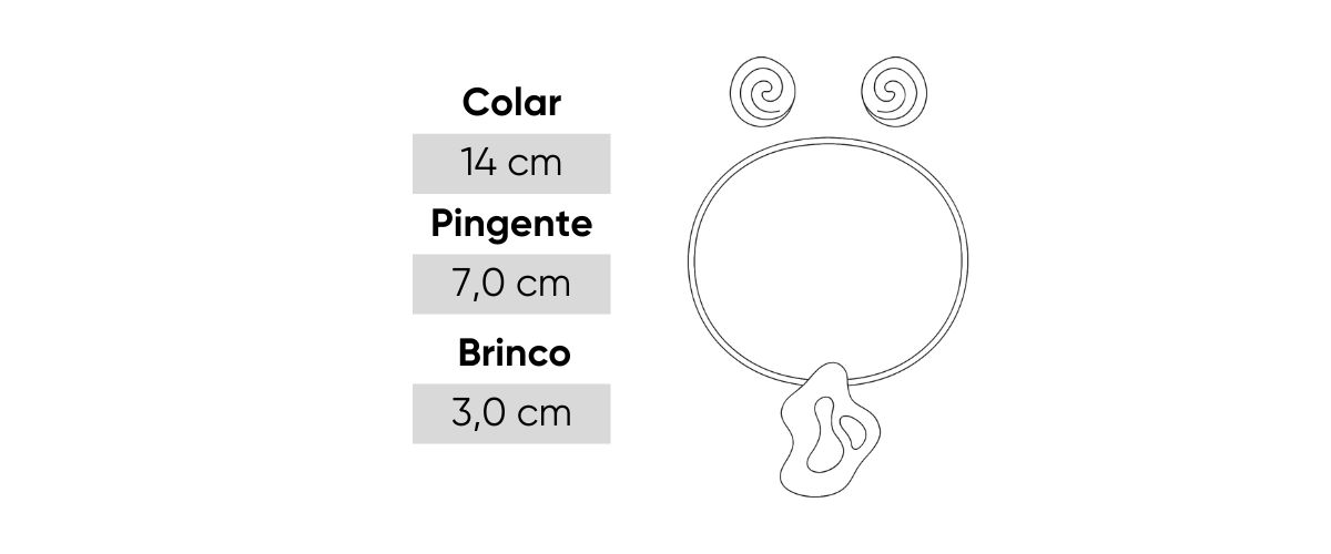 O Conjunto Grazi é uma expressão de arte em forma de joia — moderno, ousado e cheio de personalidade. Composto por colar tipo choker e brincos, ele se destaca pelas formas orgânicas e acabamento texturizado em banho dourado.
