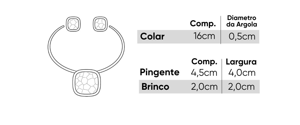 Acompanha par de brincos coordenados, com o mesmo formato geométrico e aplicação em madrepérola, garantindo harmonia perfeita no conjunto.
