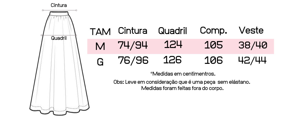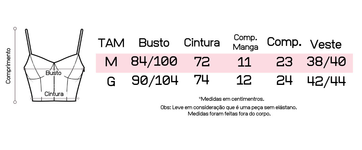 Atente-se as medidas na hora da compra para que receba a sua peça exatamente do tamanho que deseja