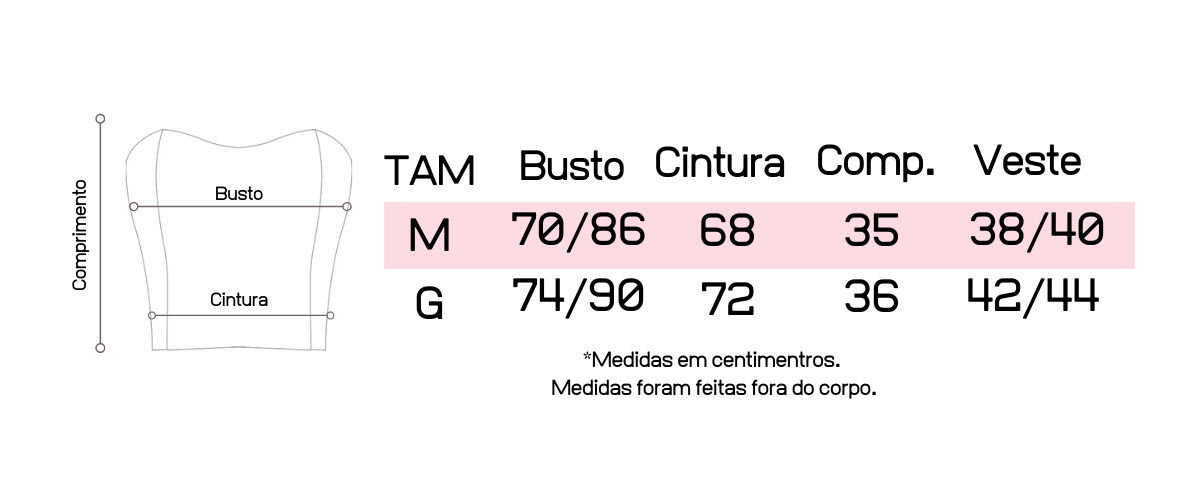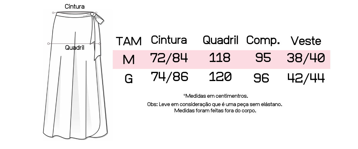 Atente-se as medidas na hora da compra para que receba a sua peça exatamente do tamanho que deseja