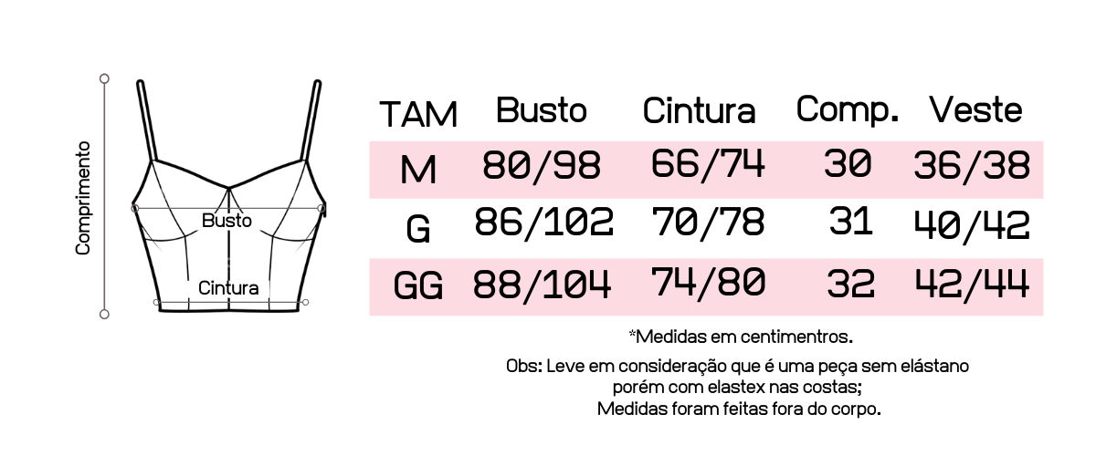 - Com elastex nas costas que ajuda moldar em seu busto;