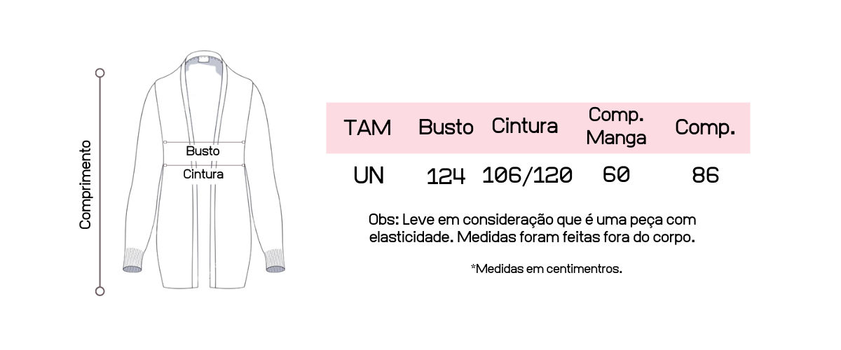 Atente-se as medidas na hora da compra para que receba a sua peça exatamente do tamanho que deseja