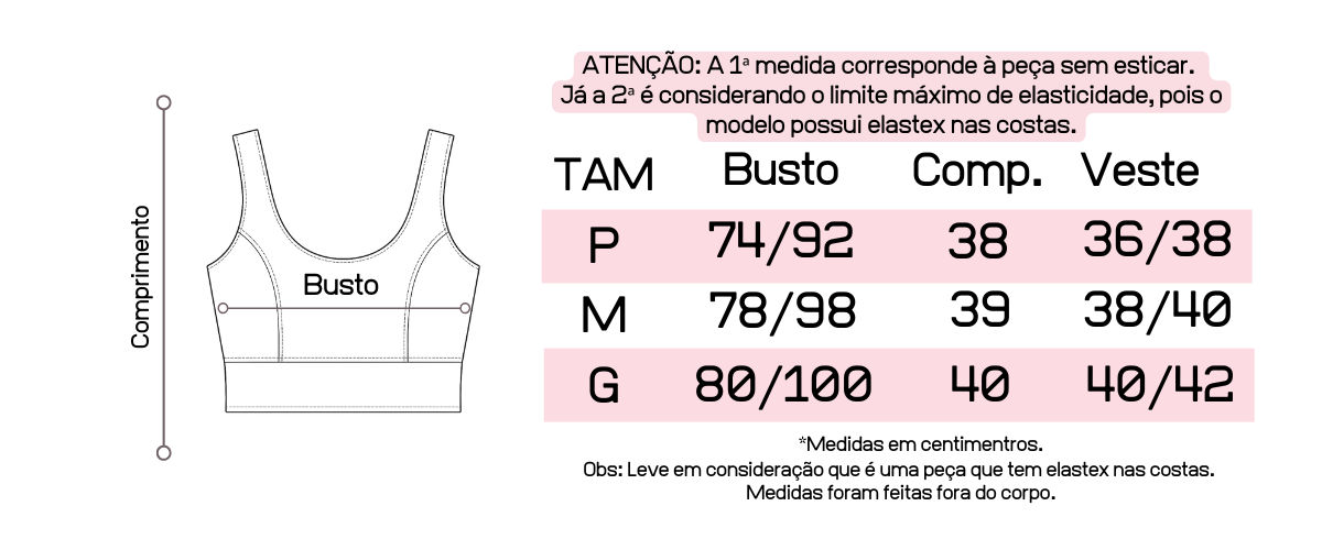 Atente-se as medidas na hora da compra para que receba a sua peça exatamente do tamanho que deseja